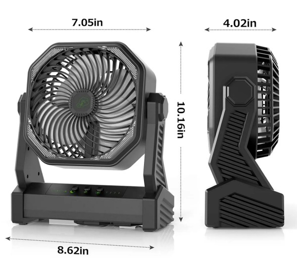 Praktický přenosný ventilátor s vestavěnou baterií 20 000 mAh je ideální na kempování, turistiku, do stanu, karavanu nebo jako záložní řešení doma. Nabízí 4 rychlosti ventilátoru, 3 úrovně svícení a navíc funguje jako powerbanka pro nabíjení telefonu. Díky kompaktním rozměrům se snadno přenáší a je skvělým společníkem pro každou cestu.