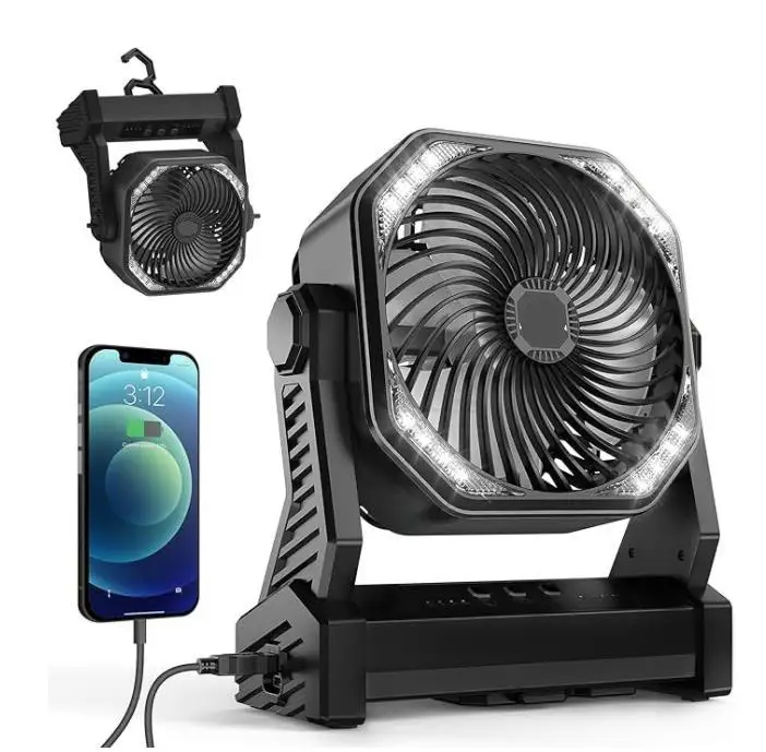 Dobíjecí kempingový ventilátor s LED světlem a powerbankou – 20 000 mAh