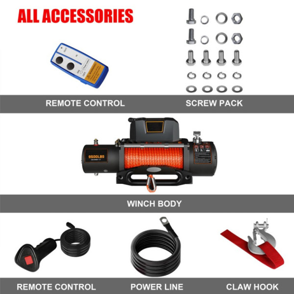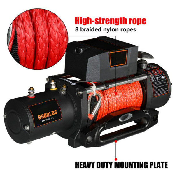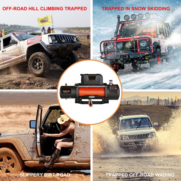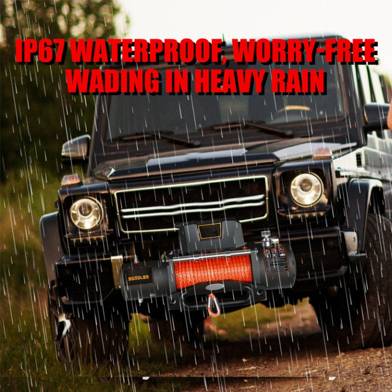 Elektrický naviják s tažnou silou 9500 lb (přibližně 4,3 t) je spolehlivým pomocníkem pro vyproštění vozidla v terénu, manipulaci s nákladem nebo práci v náročných podmínkách. Výkonný sériově vinutý elektromotor o výkonu 5,5 HP (4,1 kW) a třírychlostní planetová převodovka s převodem 265:1 zajišťují vysoký tah a plynulý chod. Naviják je vybaven syntetickým lanem Dyneema o délce 24 m a průměru 9 mm, přičemž je možné zvolit i ocelové lano. Automatická brzda zvyšuje bezpečnost při práci a součástí je kabelové i bezdrátové dálkové ovládání. Robustní konstrukce je určena pro vozidla 4×4, pracovní i záchranné použití.Více informací