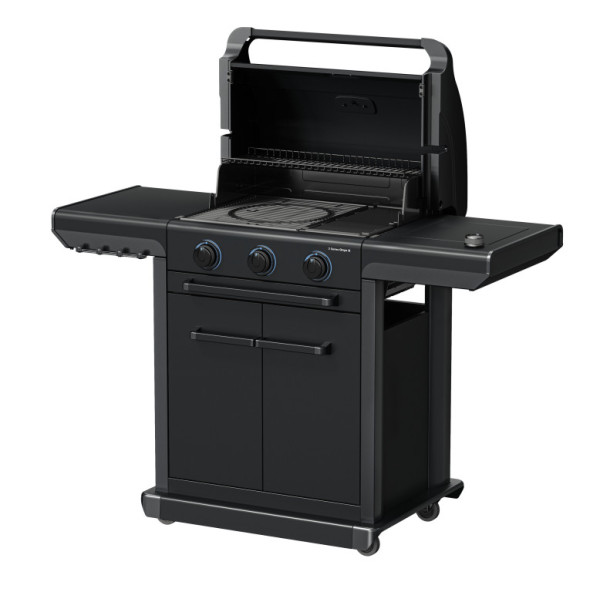 Elitní prémiový plynový gril se třemi výkonnými Blue Flame hořáky z nerezové oceli a bočním vařičem pro přípravu omáček a příloh. Grilovací plocha je rozdělena na litinový Culinary Modular rošt a oboustranný tál.Nová technologie tohtoto grilu umožnila odstranit stříšky nad hořáky. Ochrana hořáků je nyní zabudovaná přímo v roštech grilovací plochy, což markantně omezuje zpětné vznícení odkapávajících šťáv a zanesení trysek. Unikátní čistící systém InstaClean® AQUA ještě více zpříjemní čistění grilu. Do odpadní zásuvky totiž lze nalít voda, která pak snadno pohlcuje nečistoty z grilování, a dokonce zvlhčí celý grilovací prostor, což přispívá šťavnatosti grilovaných pokrmů. Odpadní voda je pak vypuštěna do snadno vyjímatelné nádržky s filtrem, kterou po skončení grilování vylijete a opláchnete. Pomocí ovládacích knoflíků a teploměru ve víku lze pohodlně regulovat teplotu. Gril má dva boční stolky, z toho jeden sklopný. Nový Push2Fold systém sklápění stolků umožńuje pohodlně stolek sklopit a zajistit. Přední kryt je tvořen dvěma dvoustěnnými dvířky a v těle grilu můžete uskladnit i 10 kg PB lahev. Gril Onyx vám, kromě elegantní saténové černé barvy, navíc nabízí vylepšené materiály na podsvícených ovládacích knoflících, nebo InstaStart zapalování jedním stiskem. Má také čtyři vysoce kvalitní terénní kolečka, která jsou krytá podvozkem a dvířka z dvojité oceli.Více informací