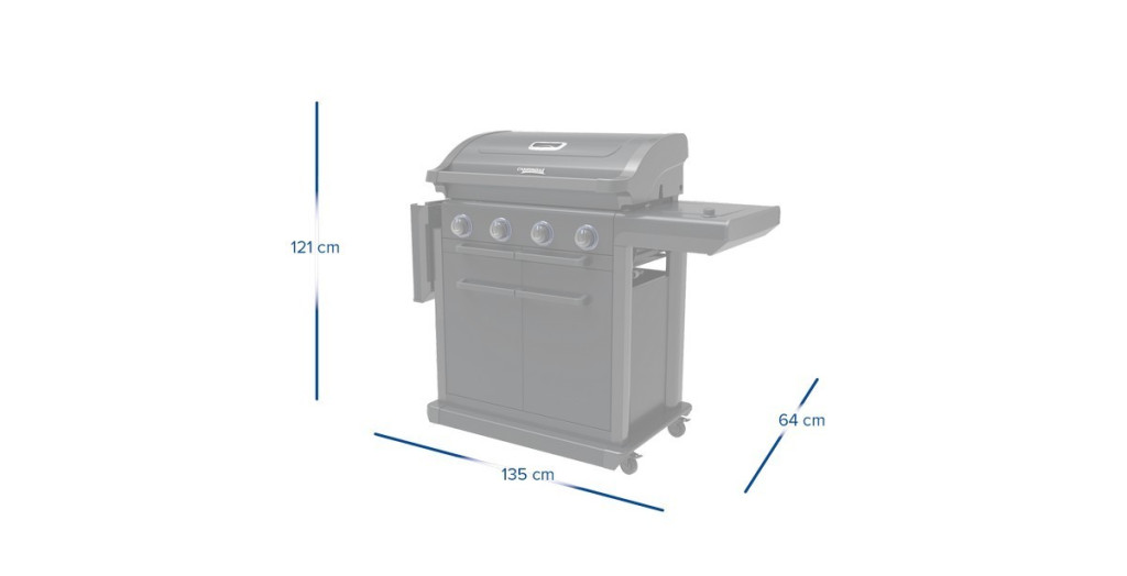 Rozměr grilu zavřeného: 135 × 64 × 121 cm