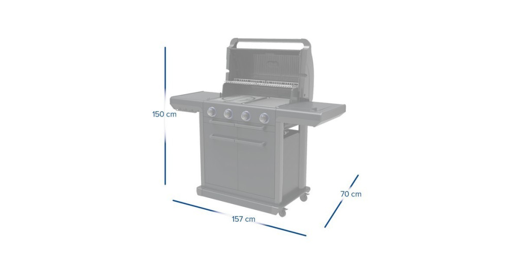 Rozměry otevřeného grilu: 157 × 70 × 150 cm