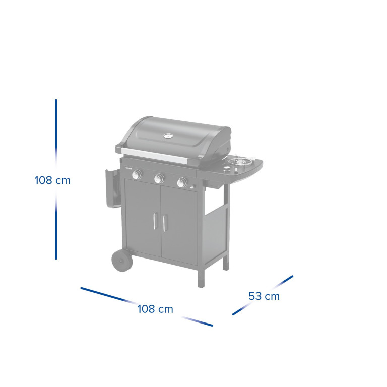 Kompaktní plynový gril s třemi výkonnými hořáky a bočním vařičempřináší optimální poměr ceny a výkonu. Tato řada grilů má vylepšený tácek na odpad, který lze pohodlně vysunout ze spodní části grilu a ještě stabilnější grilovací plochu. Grilovací plocha je tvarována tak, aby omezila zpětné vznícení plamenů z odkapávajících šťáv z grilovaných pokrmů Údržba je rychlá a snadná. Design dále obohacují sklápěcí boční stolek, teploměr ve víku a prostor pro dvě kolečka usnadňující manipulaci.Více informací