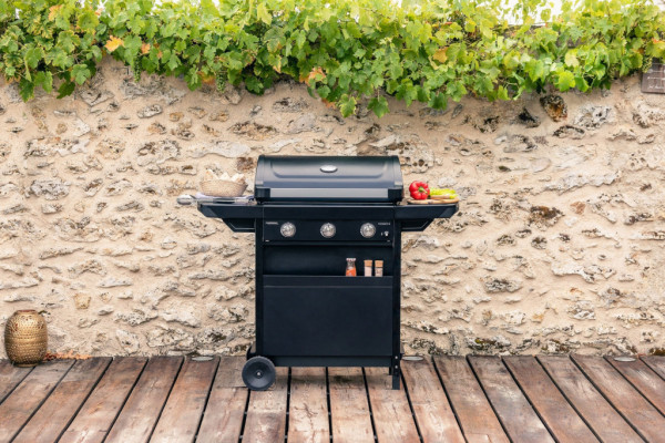 Kompaktní a lehký plynový gril s třemi hořáky z aluminizované oceli a celkovým výkonem 7,5 kW. Smaltovaný ocelový rošt je tvarován tak, aby zabránil odkapávání oleje do hořáků a zamezuje tak vznícení a zároveň poskytuje rovnoměrné rozložení tepla přes celou grilovací plochu. Díky piezo zapalování, dvěma integrovaným kolečkům a madly pro snadné ovládání je používání jednoduché a pohodlné. Skládací boční stolky šetří místo při přenášení i skladování a snadno demontovatelný rošt i miska na tuk usnadňují údržbu.Více informací