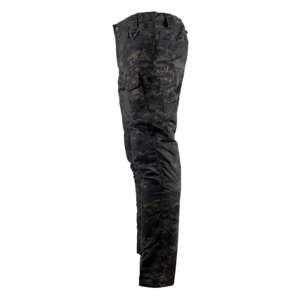 Taktické kalhoty v military stylu v kamufláži black multicam. Kalhoty jsou lehké, pohodlné a přesto velice odolné - vyrobeno z tkaniny rip-stop. Velké množství kapes a elastický pas. Posílená kolena. Pásek není součástí. Materiál 20 % bavlna, 80 % polyester, 210-220 g/m².Více informací