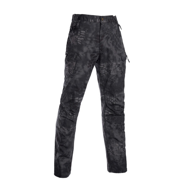 Taktické kalhoty v military stylu v kamufláži python. Kalhoty jsou lehké, pohodlné a přesto velice odolné - vyrobeno z tkaniny rip-stop. Velké množství kapes a elastický pas. Posílená kolena. Pásek není součástí. Materiál 35 % bavlna, 65 % polyester, 210-220 g/m².Více informací