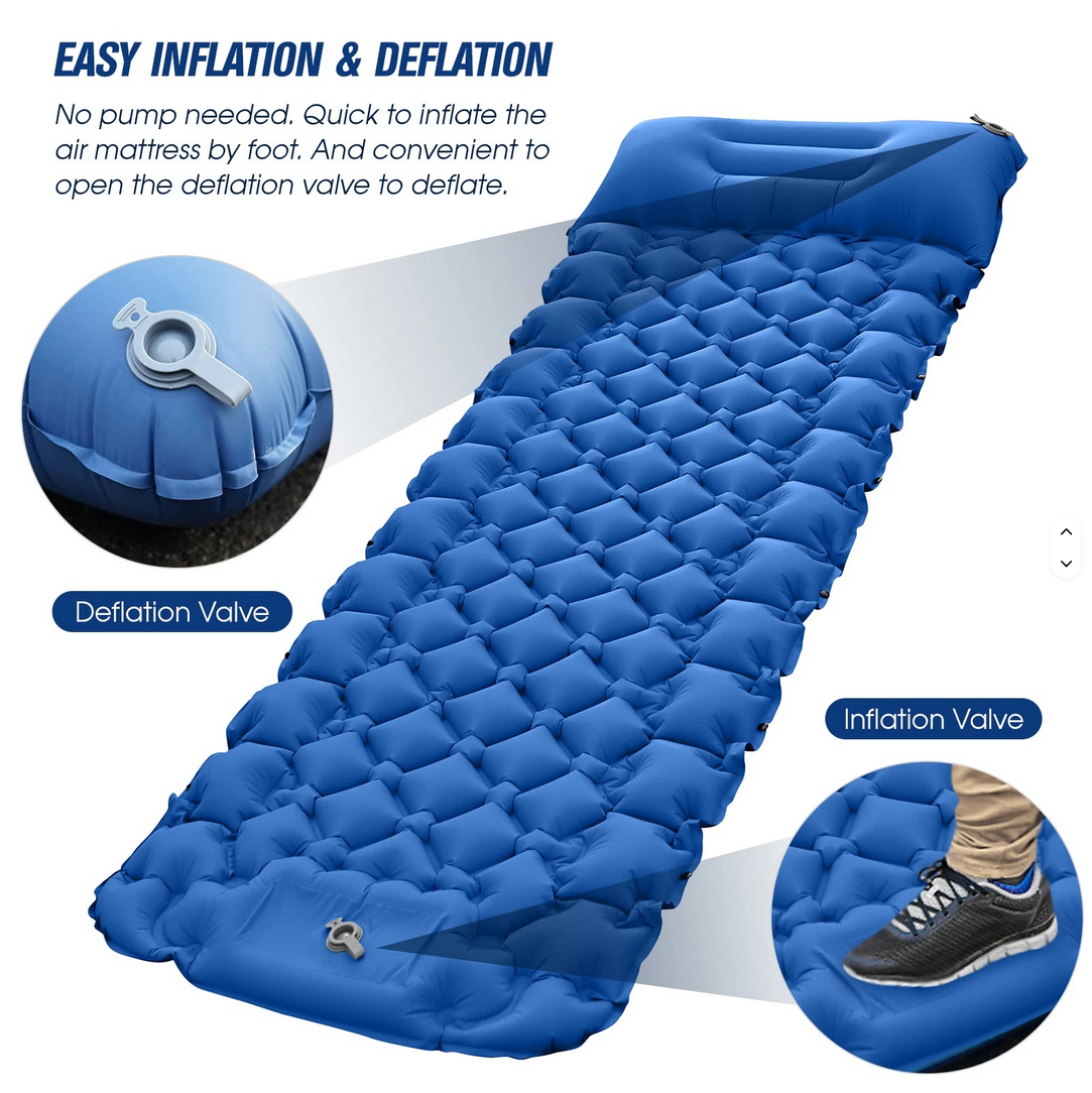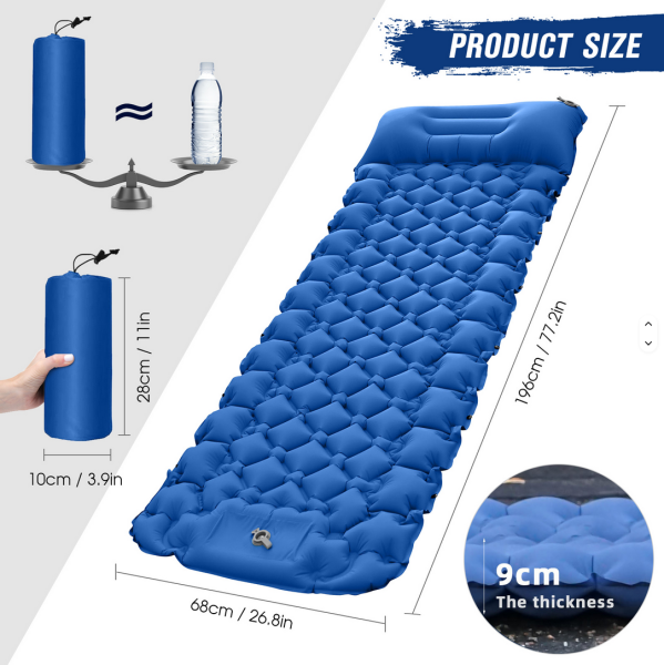 Lehká a skladná nafukovací karimatka je ideální pro kempování, turistiku, rybaření i horské výpravy. Díky své konstrukci s integrovaným polštářem poskytuje maximální pohodlí a oporu pro celé tělo, přitom zabírá minimum místa a snadno se přenáší v dodávaném obalu.