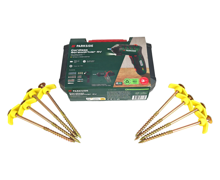 Kotvící sada tesařské šrouby 8x10x200, 8x plastový držák, 1x aku šroubovák