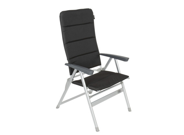 Pohodlná a stabilní skládací židle vhodná pro kempování, karavaning i posezení na zahradě. Hliníkový rám zajišťuje nízkou hmotnost a zároveň vysokou odolnost. Díky 7polohovému nastavitelnému opěradlu si snadno najdete ideální pozici pro relaxaci. Polstrované sedadlo a opěradlo (10 mm) výrazně zvyšují komfort při delším sezení.Více informací