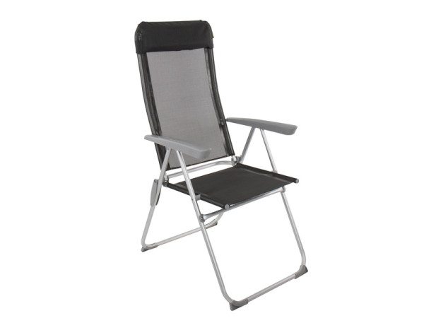 Pohodlná skládací židle s 5polohovým nastavitelným opěradlem a integrovaným polštářem pro oporu hlavy. Lehká hliníková konstrukce zajišťuje snadnou manipulaci a stabilitu. Ideální pro kempování, pikniky nebo relaxaci na zahradě.Více informací