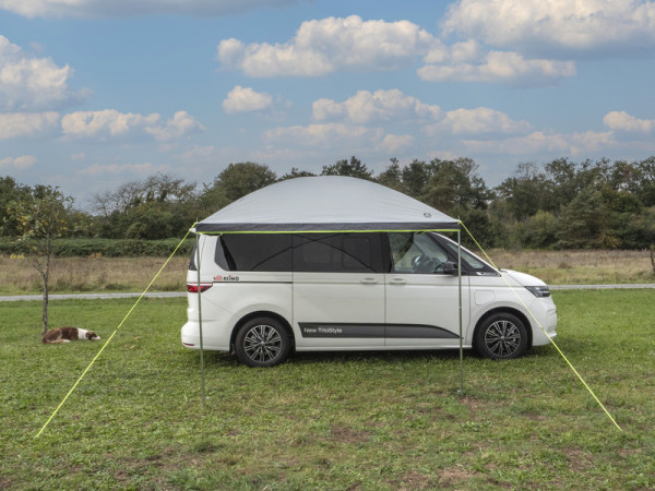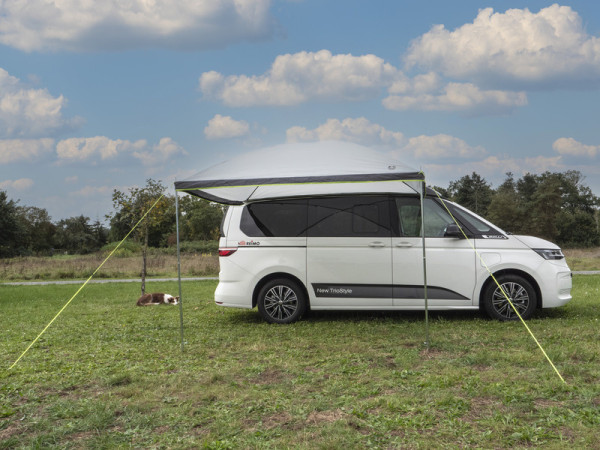 Tato sluneční markýza o rozměrech 300 x 240 cm je ideální pro karavany a obytné vozy s krátkým rozvorem, jako je VW Transporter. Je vybavena kopulovitou střechou, která zabraňuje tvorbě vodních kapes, a stabilizačními sklolaminátovými tyčemi. Vyrobená z odolného polyesteru Oxford 300D, nabízí spolehlivou ochranu před sluncem a deštěm.Více informací