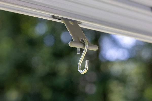 Tyto praktické háčky jsou určeny k zavěšení různých předmětů, jako jsou ručníky, světla nebo dekorace, na přední profil markýzy, přičemž díky své konstrukci a kvalitním materiálům jsou vhodné pro dlouhodobé použití v různých podmínkách.Více informací