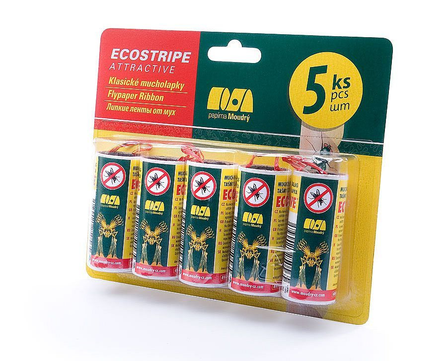 Oboustranně lepicí pás papíru opatřený lákadly, který zaručuje účinný odchyt mouchy domácí (Musca domestica).Více informací