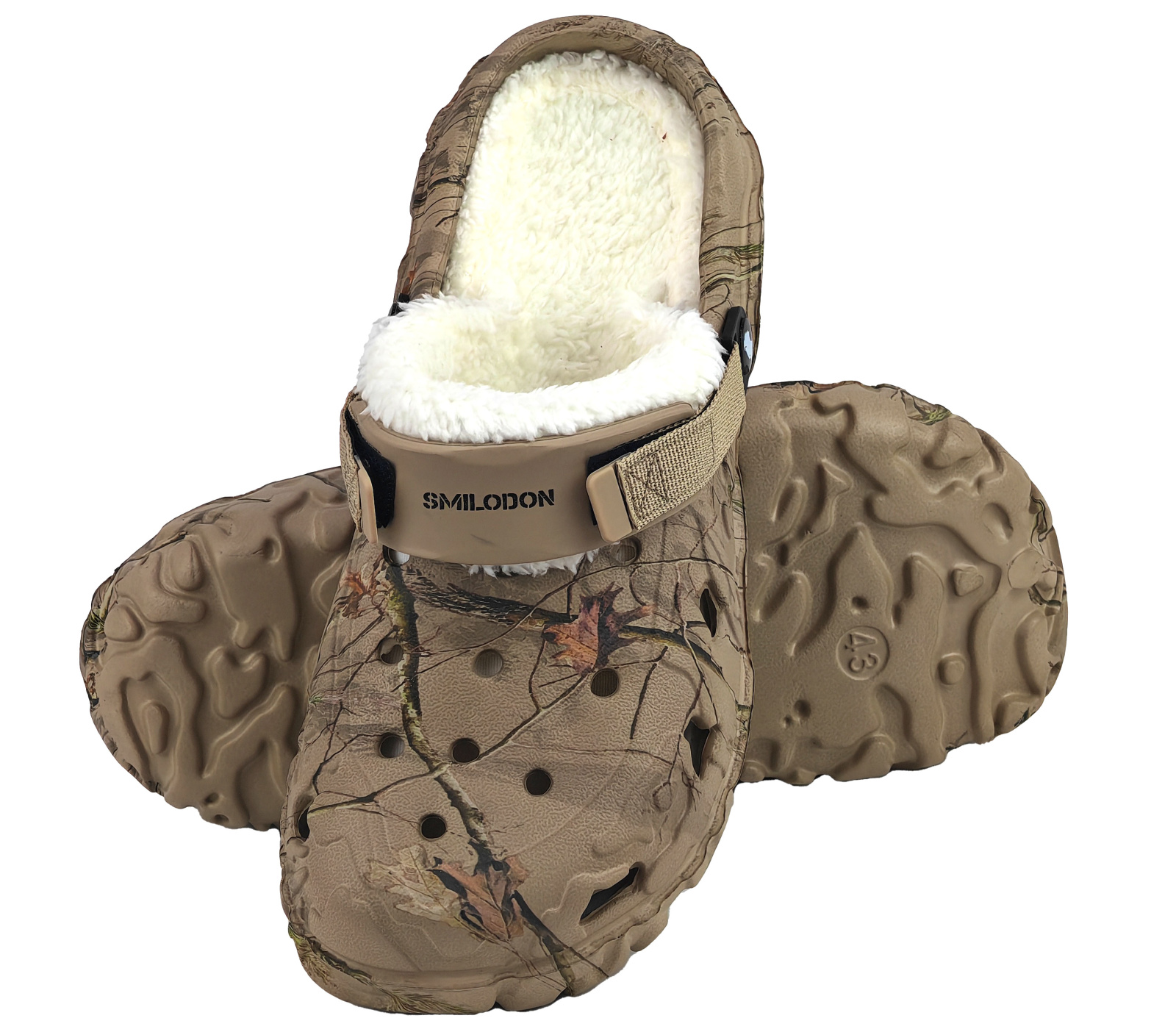 Design v béžové lesní kamufláži ocení každý, kdo má rád přírodu a outdoor styl. Tyto zateplené dřeváky jsou lehké, snadno omyvatelné a stanou se vaším oblíbeným společníkem doma, na chatě, při práci venku nebo při relaxu po dlouhém dni.