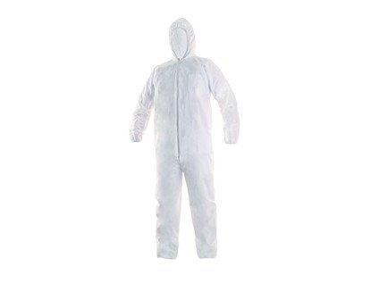 Jednorázový oblek z netkané textilie, zapínání na zip. Kapuce, manžety rukávů a nohavice zakončeny gumičkou. Chrání před prachem a lehkým zašpiněním. Doporučené použití: potravinářství, kosmetika, zdravotnická zařízení, kde není požadavek na sterilní oděv.