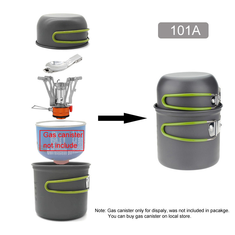 Praktická a lehká sada nádobí s přenosným skládacím plynovým vařičem je ideální pro kempování, turistiku, pikniky a outdoor vaření. Všechny komponenty jsou kompaktně sbalitelné a snadno přenosné v přiloženém obalu.