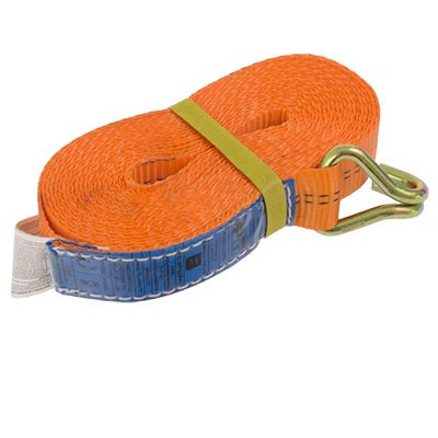 Upínací pás 2 tuny/8 metrů s ráčnou pro bezpečné zajištění břemene při přepravě nebo skladování. Upínací pás i ráčna jsou ukončeny kovovým hrotovým hákem.