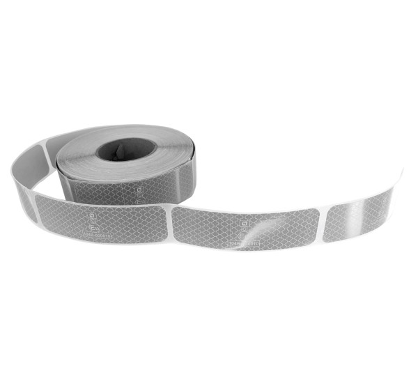 Bílá reflexní dělená samolepící páska na značení cisteren. Páska je dělená na obdélníky 16 x 5 cm.