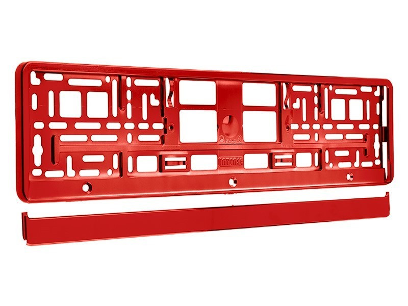Rámka má metalizovanou povrchovou úpravu, která vytváří lesklý červený efekt, je odolná vůči povětrnostním vlivům a zvyšuje vizuální dojem z vozu. Ochranný okraj rámky zabraňuje poškození registrační značky a jejího okolí během běžného používání. Univerzální rozměr zajišťuje kompatibilitu s běžnými registračními značkami osobních vozidel.