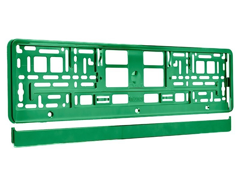 Rámka má metalizovanou povrchovou úpravu v zelené barvě, která opticky zvýrazní registrační značku a podtrhne celkový styl vozu. Ochranné okraje pomáhají chránit SPZ a její okolí před poškozením způsobeným nečistotami nebo nárazy při běžném provozu. Univerzální rozměr zajišťuje kompatibilitu s běžnými registračními značkami osobních vozidel a materiál je odolný vůči povětrnostním vlivům.