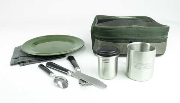 Jídelní sada ideální pro rybáře obsahující příbory, ubrousky/ručníky a je zabalena v praktickém textilním pouzdře.Více informací