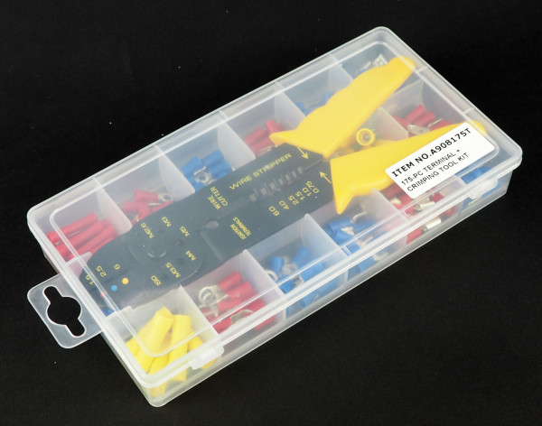 Sada obsahuje 175 ks elektro konektorů + krimpovací kleště.