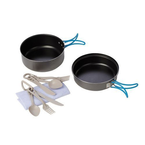 Sada kempingová nádobí - 2ks příborů, 2ks pánev, set