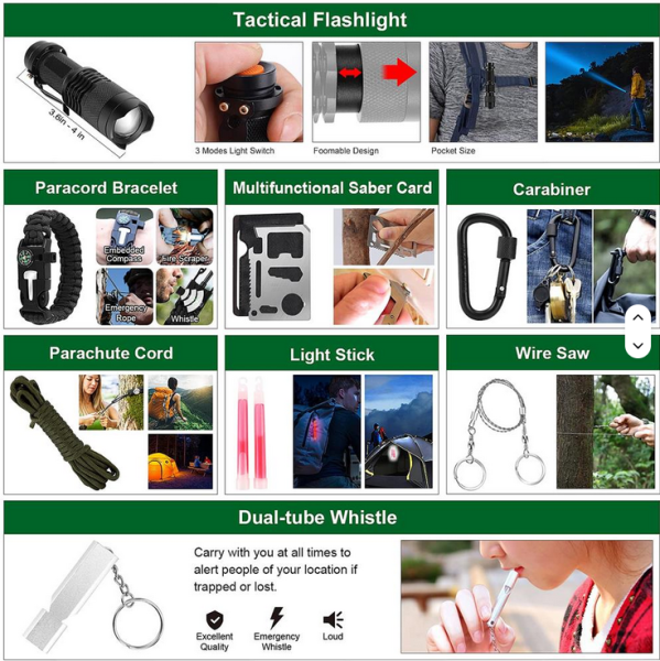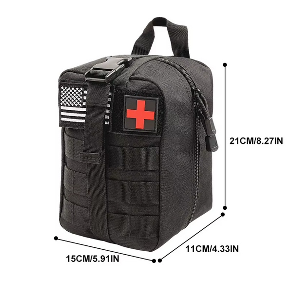 Tato komplexní sada pro přežití obsahuje vše potřebné pro kempování, turistiku, rybaření, nouzové situace i každodenní outdoor použití. Vše je přehledně uloženo v odolné taktické brašně s upevněním typu MOLLE, která se snadno připevní k batohu nebo opasku.