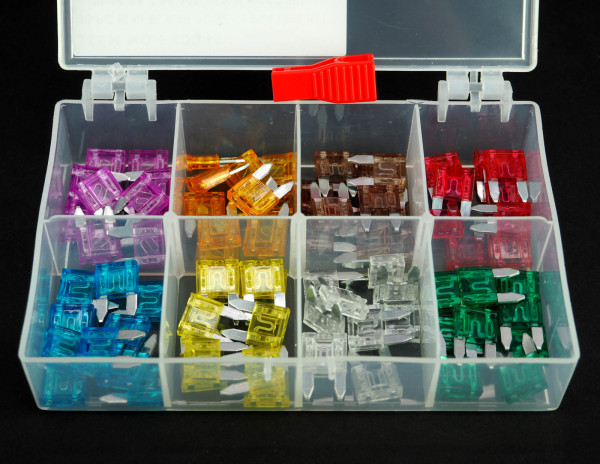 Sada obsahuje 80 ks nožových auto pojistek, velikost MINI.
