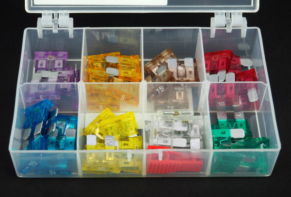 Sada obsahuje 40 ks nožových auto pojistek, velikost STANDARD (MIDI), vytahovák pojistek - 1 ks.