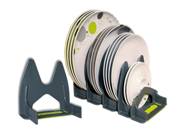 Purvario Tellerassistent je flexibilní držák talířů vhodný pro různé velikosti díky nastavovacímu systému. Poskytuje stabilní oporu s protiskluzovým spodkem a snadným přizpůsobením pro libovolný počet talířů. Perfektní pro organizaci nádobí v obytných vozech či karavanech, snadno rozšiřitelný a omyvatelný v myčce.Více informací