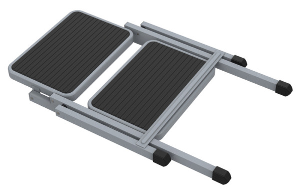 Skládací dvojitý nášlap CARBEST nabízí maximální stabilitu a bezpečí při každém kroku. Obě nášlapné plochy jsou vybaveny protiskluzovým žebrováním a gumovými nožkami pro lepší přilnavost na různých typech povrchů. Robustní konstrukce z oceli zajišťuje dlouhou životnost i při pravidelném používání. Díky skládacímu mechanismu je nášlap snadno skladovatelný a přenositelný – ideální do omezeného prostoru karavanu nebo úložného boxu.