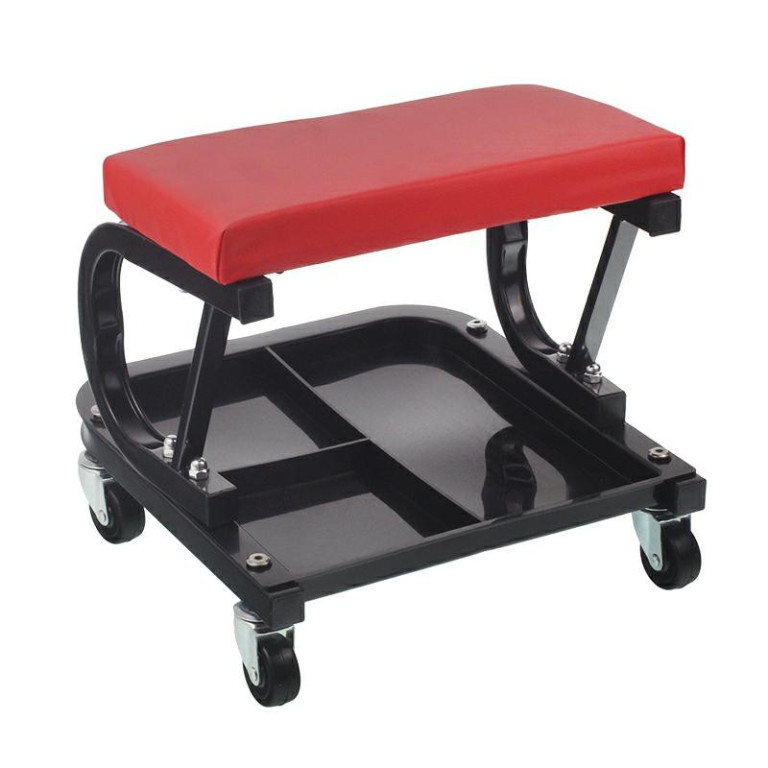 Dílenský pojízdný sedák s polstrováním. Úložná plocha je praktická pro odkládání nářadí při práci.Více informací