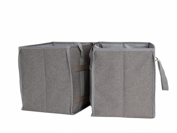 Použití skládacích boxů je praktickým řešením pro organizaci věcí během cestování i každodenního provozu. Boxy lze snadno složit naplocho, pokud nejsou zrovna potřeba, a díky postranním držadlům je jejich manipulace pohodlná. Zpevněné dno zabraňuje posouvání při jízdě a univerzální rozměry vyhovují většině zavazadlových prostor.
