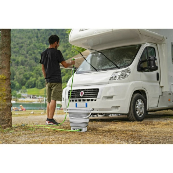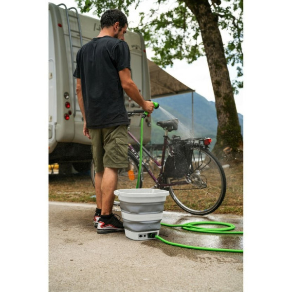 Skládací kbelík na vodu 15l, s akumulátorovým čerpadlem a sprchou AquaRover