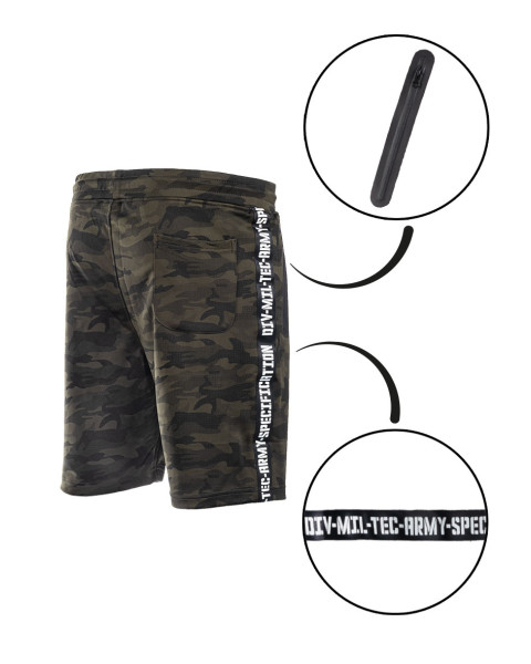 Lehké teplákové šortky, které jsou pohodlné při nošení a to díky využití měkkého polyesteru při výrobě. Na pase dobře podrží díky elastickému pasu se šněrováním. Na každé straně se nachází hluboká kapsa s voděodolným zipem.