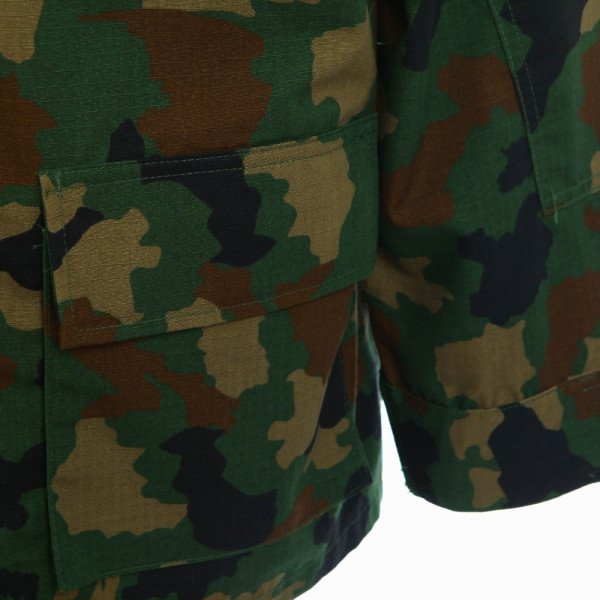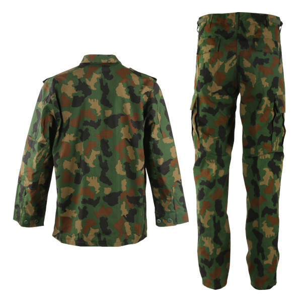 Taktická maskáčová souprava (kalhoty a blůza) ve stylu BDU (battle dress uniform). V neobvyklé africké kamufláži. Vyrobeno z pevné tkaniny ripstop. Materiál 65% polyester 35% bavlna.