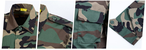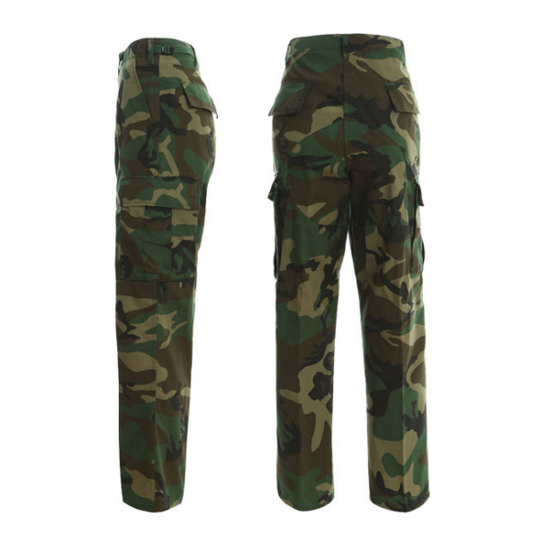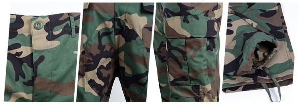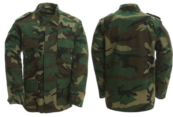 Taktická maskáčová souprava (kalhoty a blůza) ve stylu BDU (battle dress uniform). V kamufláži woodland. Vyrobeno z pevné tkaniny ripstop. Materiál 65% polyester 35% bavlna.