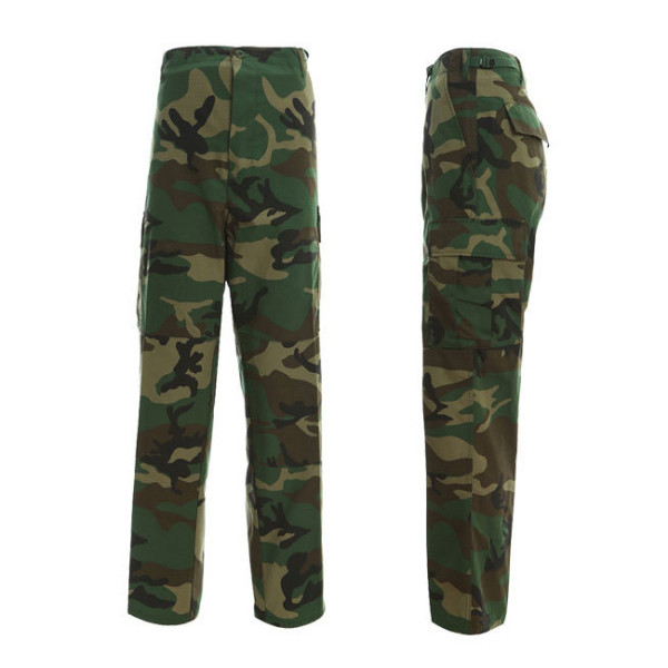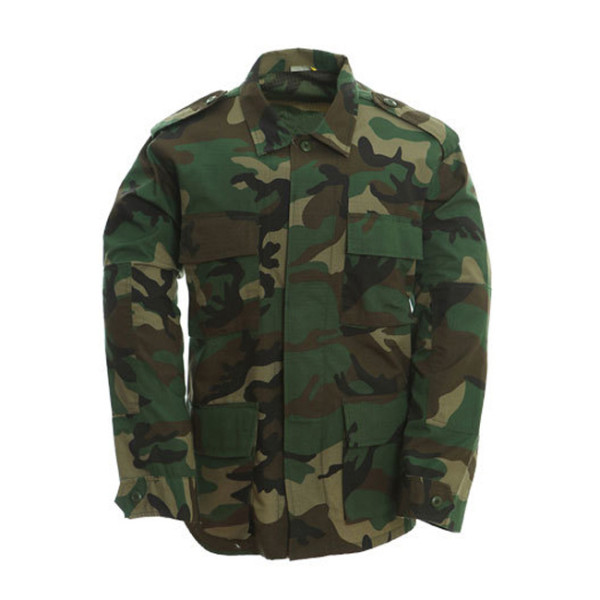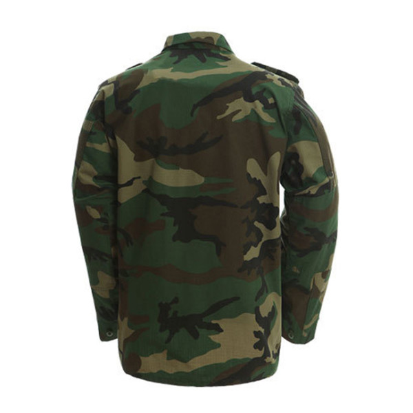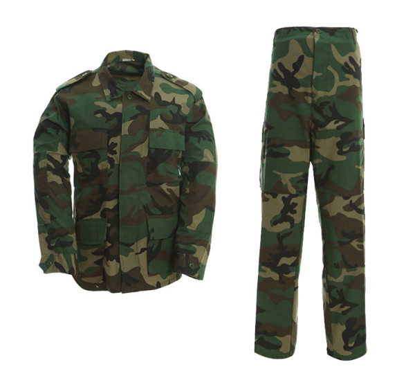 Taktická maskáčová souprava (kalhoty a blůza) ve stylu BDU (battle dress uniform). V kamufláži woodland. Vyrobeno z pevné tkaniny ripstop. Materiál 65% polyester 35% bavlna.