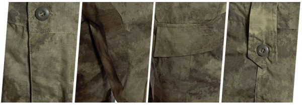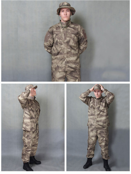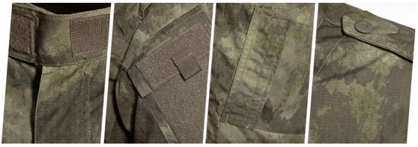 Taktická maskáčová souprava (kalhoty a blůza) ve stylu ACU (army combat uniform). Kamufláč a-tacs AU. Materiál 65% polyester 35% bavlna.