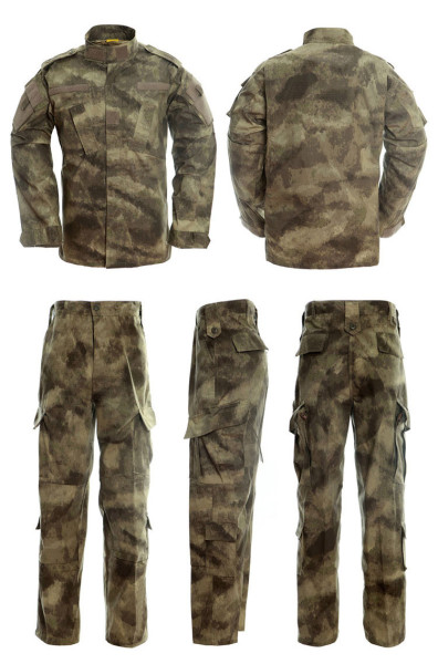 Taktická maskáčová souprava (kalhoty a blůza) ve stylu ACU (army combat uniform). Kamufláč a-tacs AU. Materiál 65% polyester 35% bavlna.