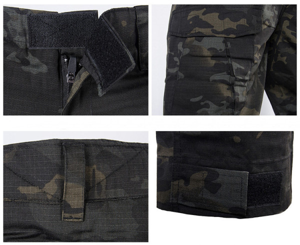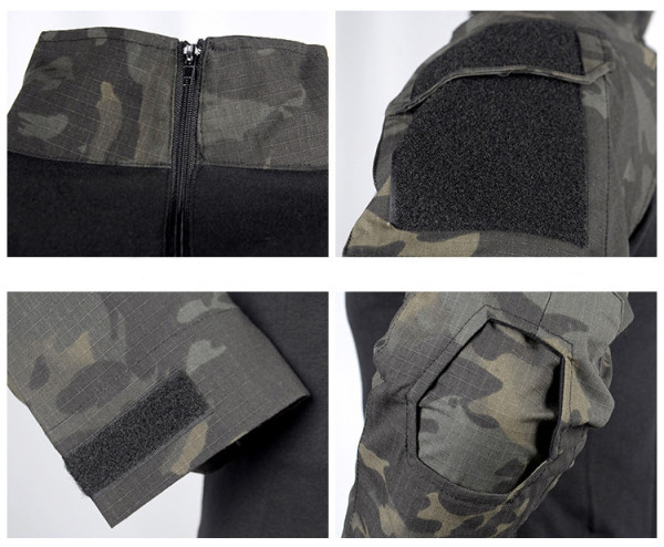 Taktická maskáčová army souprava v kamufláži multicam black. Materiál kalhoty: 65% polyester, 35 % balvna, gramáž 210-220 g/m²., triko: bavlna, polyester, spendex gramáž 180-190 g/m².