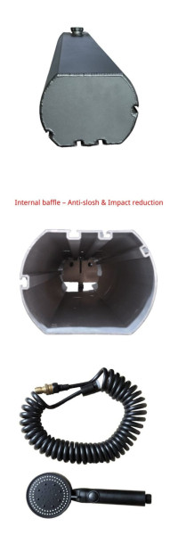 Přenosná střešní sprcha Road Shower je praktický zásobník vody pro cestování, kempování i off-road expedice. Díky pevné konstrukci z 3mm hliníku je nádrž odolná vůči náročným podmínkám a zároveň dostatečně lehká pro montáž na střešní nosič nebo expediční platformuVíce informací