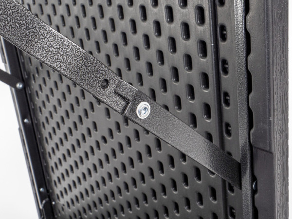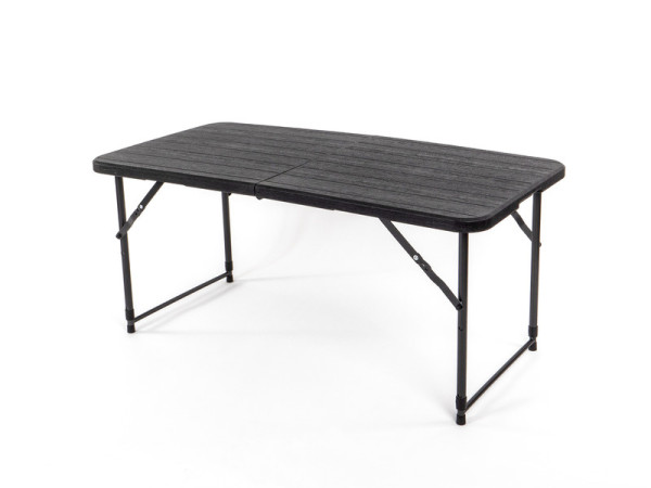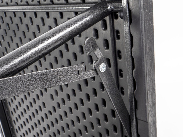 Odolný a praktický skládací stůl ideální pro kempování, zahradní použití nebo trhy. Pevná pracovní deska z HDPE s jemnou strukturou a rám z práškově lakované oceli zajišťují dlouhou životnost a vysokou odolnost vůči povětrnostním vlivům. Nastavitelná výška umožňuje flexibilní využití.