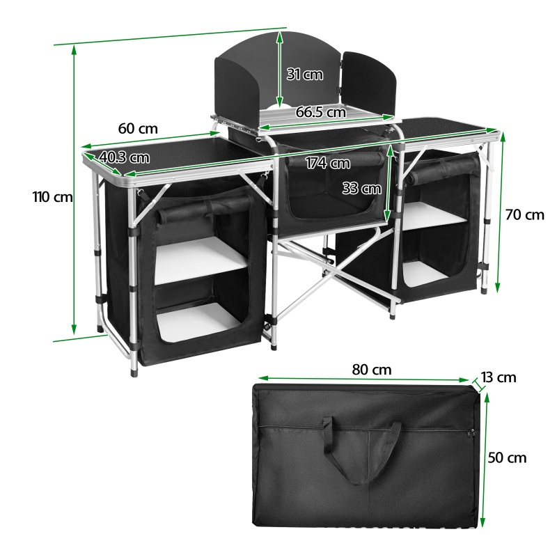 Stůl kuchyňský na vaření kempingový se 2 skříňkami