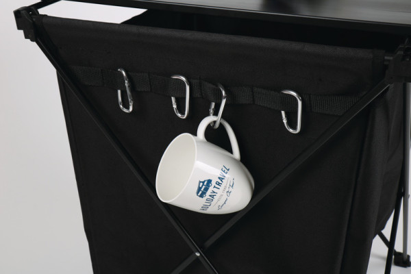 Hliníkový pojízdný stůl Hugo je kompaktní a praktický skládací stůl s odolnou konstrukcí ideální pro kempování. Má odnímatelnou úložnou tašku a desku, kterou lze otevřít pro snadné uložení předmětů, jako jsou ručníky nebo hračky. Stůl je vybaven 8 karabinami pro přichycení věcí na stranách.Více informací