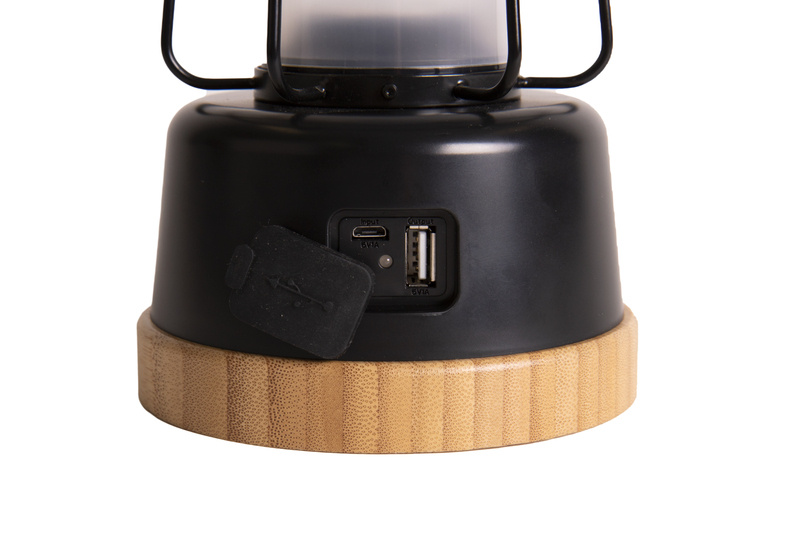 Světlo kempingové LIGHTHOUSE, stmívatelné, bambus + nerez, lithiová baterie