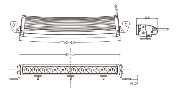 Osvětlení skrze 12 cree led (nejsvítivější led čipy s vysokou spolehlivostí), velikost 434,5x92,5x43,5mm, svítivost 3500 lumenů, výkon 60 W, teplota světla 6200K, držák z nerezové oceli, s konektorem DT, voděodolnost IP 67, odolná vůči otřesům a vibracím, homologace - ECE R112. Ideální pro offroadová vozidla a nákladní vozy.Více informací