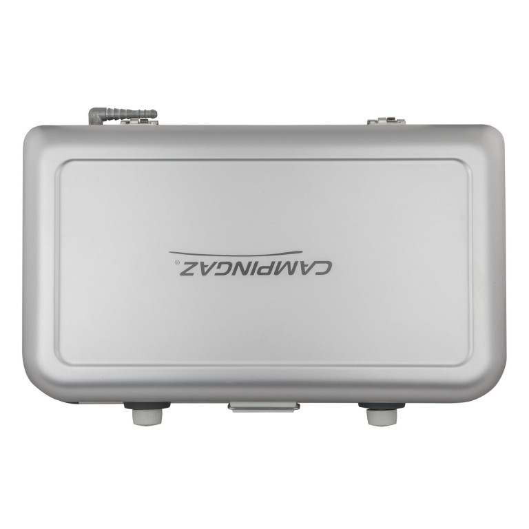 Camping Kitchen 2 je lehký a stabilní dvouhořákový vařič napájený z PB lahví, ideální pro rodinné výlety a kempování. Má kompaktní rozměry s vestavěnou rukojetí, praktické smaltované ocelové podpěrky s ochranou proti větru a svorkový systém pro spojení hadice s lahví. Ocelové víko uzavře vařič jako kufřík pro snadné přenášení. Hořáky jsou výkonem vhodné pro rychlé vaření, Litr vody přivede k varu za méně než 6 minut. Pro připojení k PB lahvi použijte doporučenou připojovací sadu (není součástí balení). Pro připojení plynové lahve R907/R904 je nutné použít regulátor č. 319174.Více informací