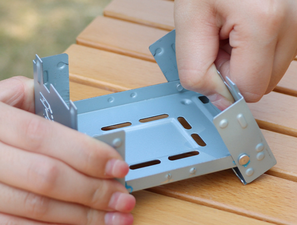 Tento mini vařič na tuhé palivo je navržený tak, aby byl co nejlehčí a co nejvíce skladný, a přitom funkční. Po složení se vejde do kapsy nebo malého prostoru v batohu. Při rozložení tvoří stabilní podstavec pro ohřev nádob na jídlo nebo vodu.